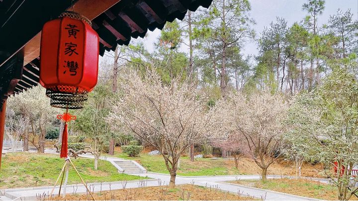 襄陽黃家灣景區內山水相依、層林疊翠,漫山遍野的梅樹姿態各異,萬枝競秀,風景如畫。這裡還是諸葛亮的岳丈—襄陽名士黃承彥的故里。