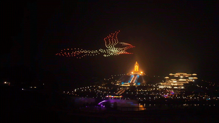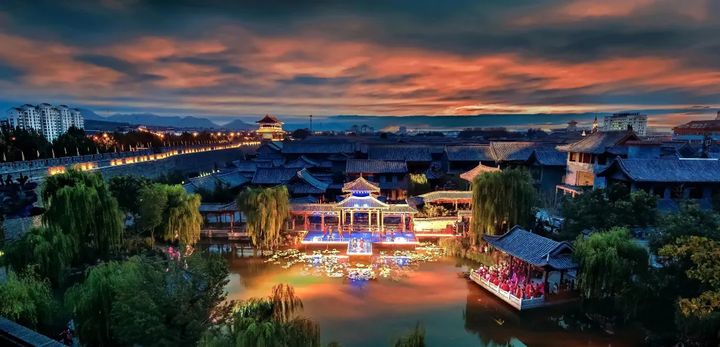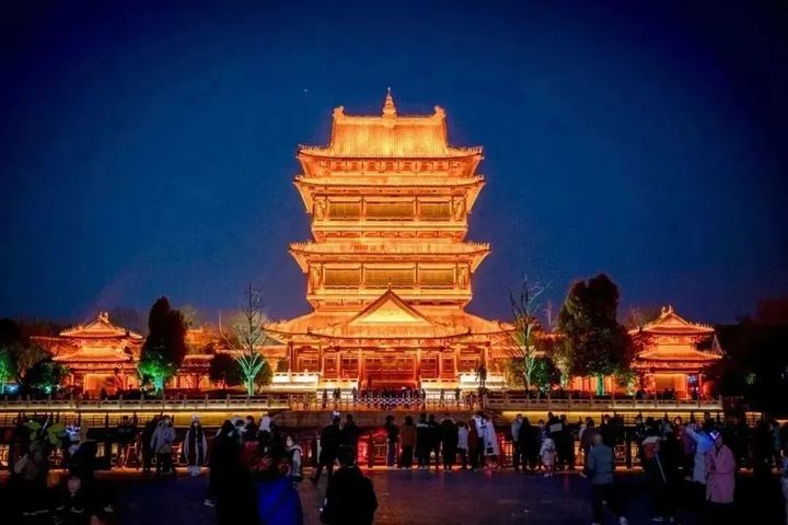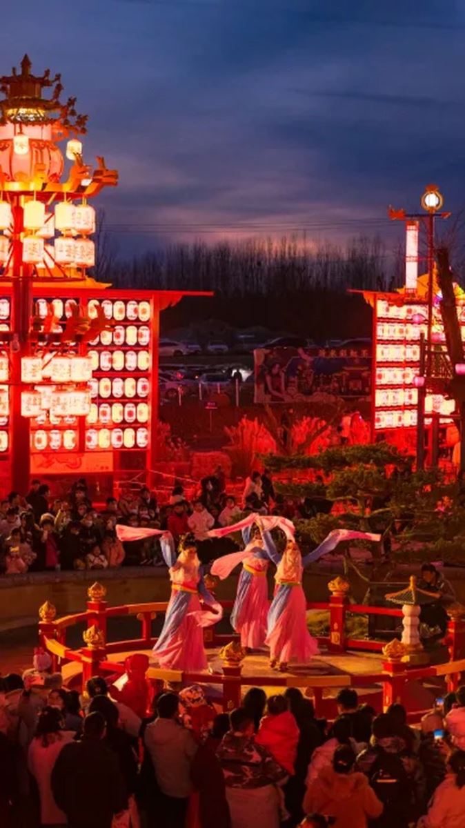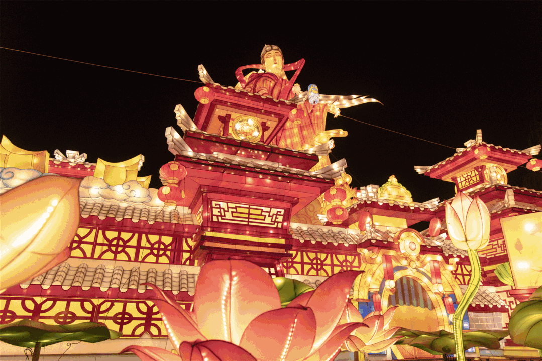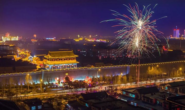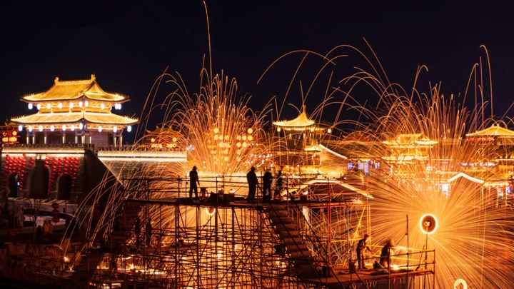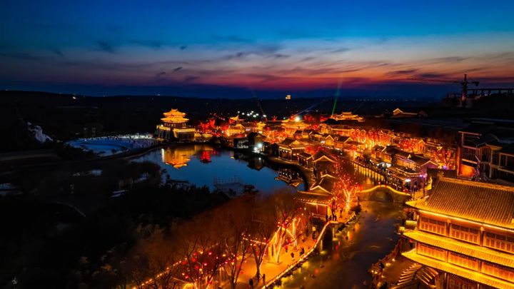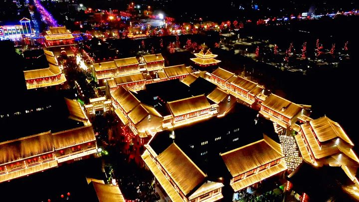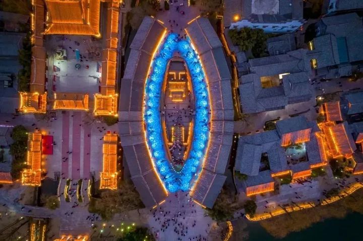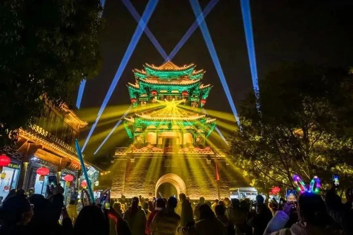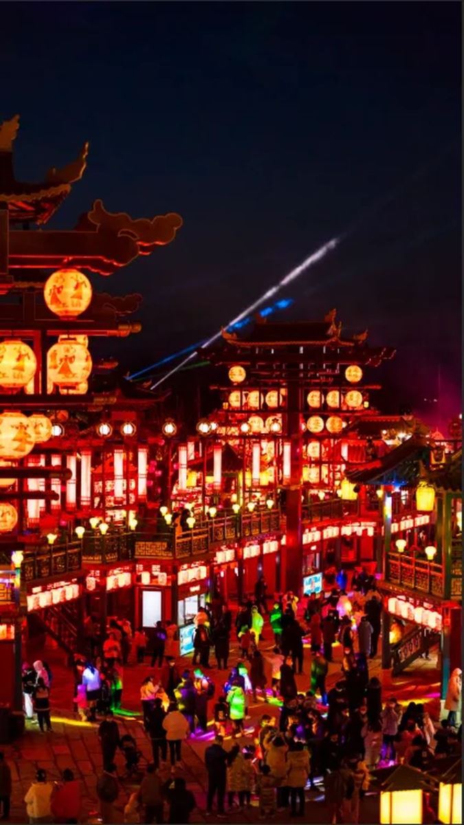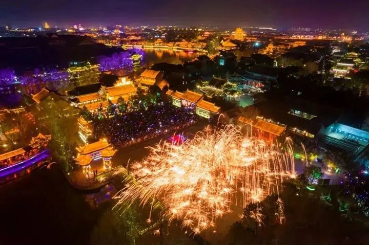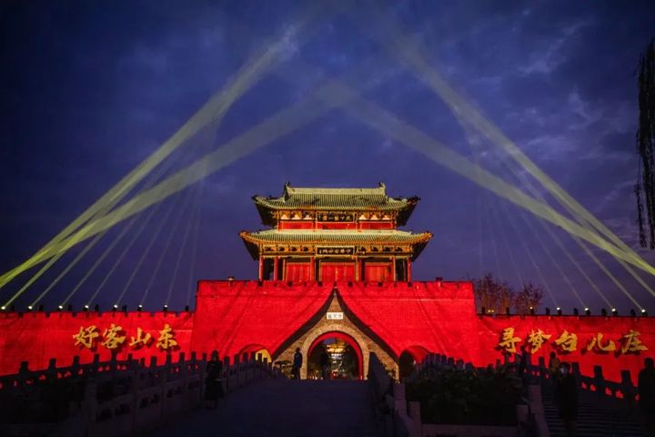 炫彩的燈光秀閃耀台兒莊古城的夜空