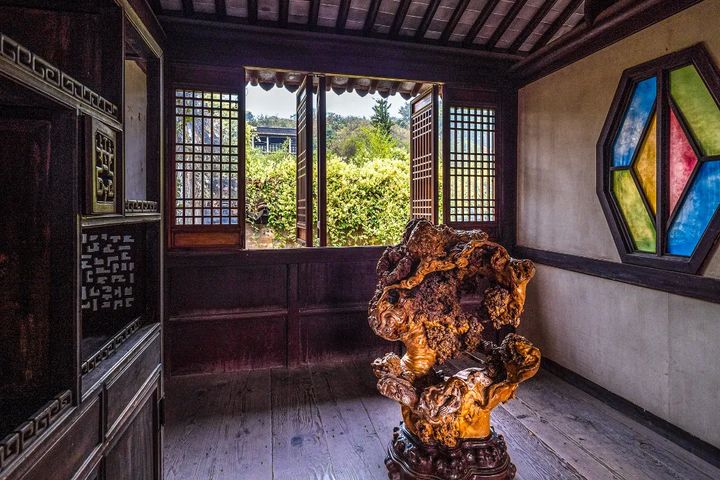 其中以敬修堂規模最大,這裡除了流傳著乾隆“金屋藏嬌”的故事外,還是《橘子紅了》《鳳穿牡丹》《庭院裡的女人》《風雨雕花樓》等影視劇的取景地。堂內有劉墉題的《貞壽毓賢》碑刻,12扇落地長窗上雕有12條長龍,是民居建築中極少見到的。
