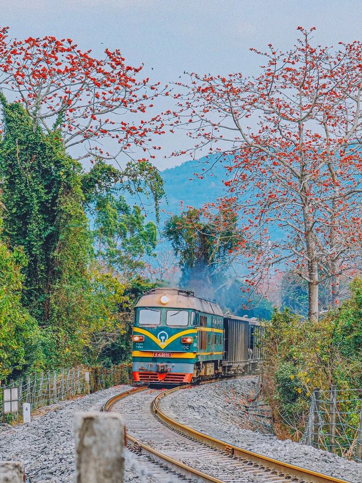 火車木棉紅的景觀令人讚歎