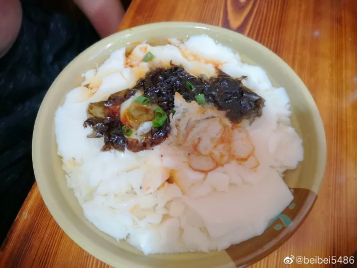 這裡的豆腐腦放的是紫菜、榨菜還有白胡椒
