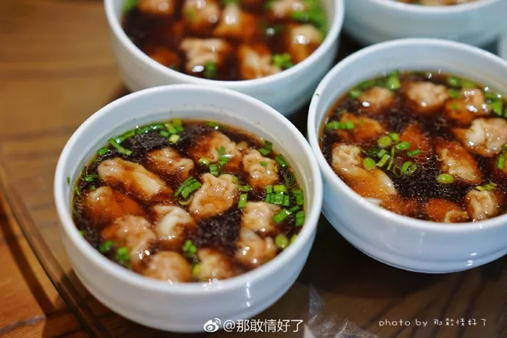 一碗熱騰騰的紅湯餛飩上桌,一口一個