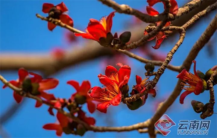 攀枝花樹的枝頭會掛滿了火紅的花朵