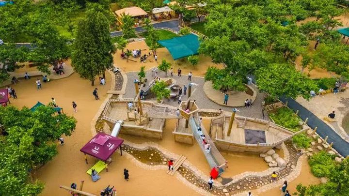 這裡有漫山遍野的梨花、綠油油的小草,還有吉姆冒險島繩網矩陣、海盜船、親子漂流、智慧迷宮、戶外大蹦床、步步驚心橋、攀樹……