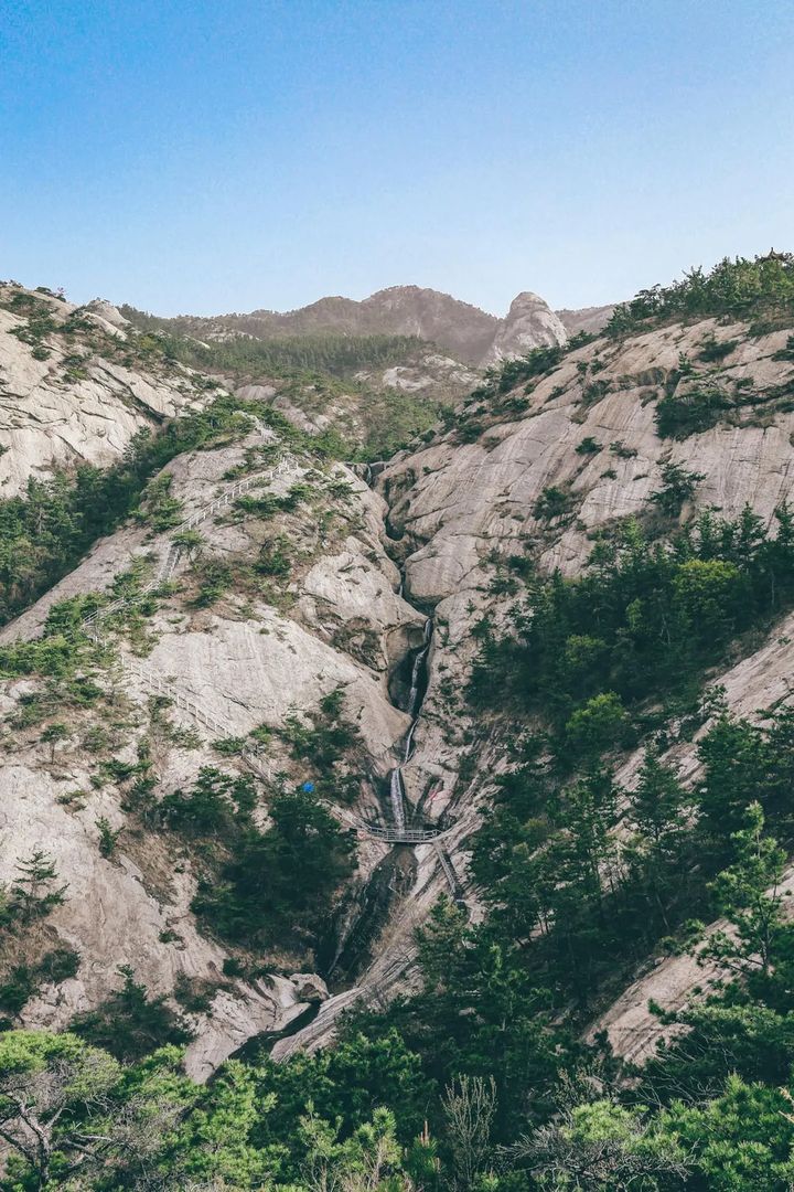 昆嵛山森林茂密,松柏蒼翠,峰巒疊嶂,怪石密佈。這裡有攝人心魂的萬米大峽谷,上下分佈著千姿百態、五顏六色的十八潭,溝谷曲折幽長,溪水、瀑布、清泉連在一起,碧水盈盈,清波蕩漾,使人流連忘返。