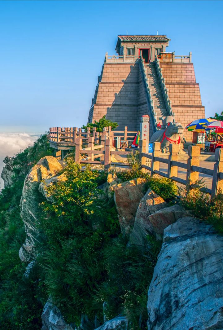 主峰大雲頂,有洞如門,高寬過丈,南北相通,遠望如明鏡高懸,夏秋時節,雲霧繚繞,穿洞而過,如滾滾波濤,將山頂廟宇托於其上,若隱若現,虛無縹緲,宛若仙境,蔚為壯觀,謂之“雲門”,或稱“雲門仙境”。