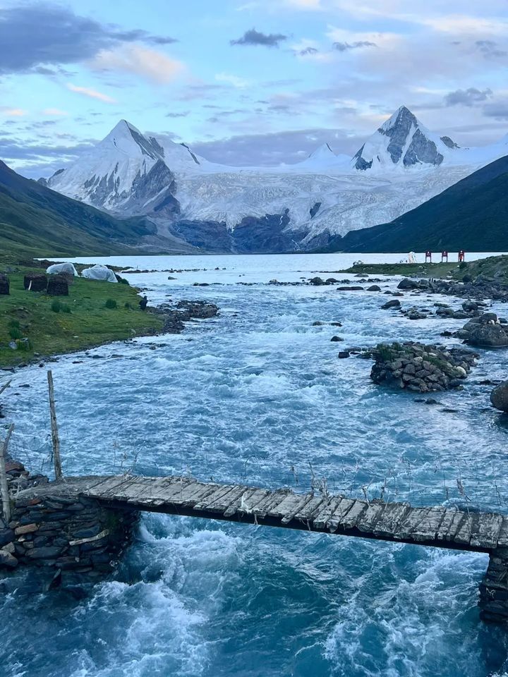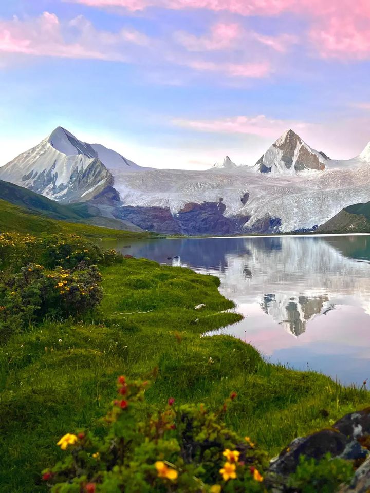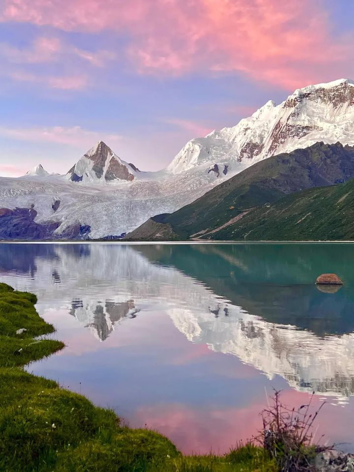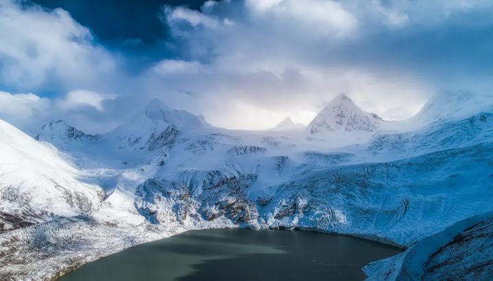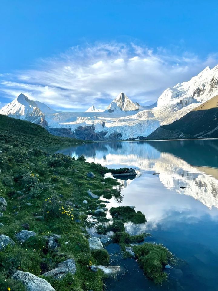 主峰海拔6956公尺,被譽為「雪山深處的伊甸園」,周圍群峰聳立,冰川與湖泊交織成無人侵擾的“最後一片秘境”。