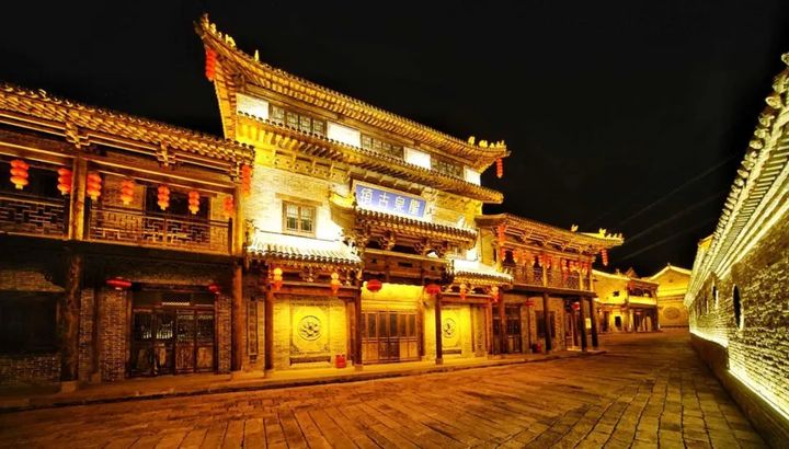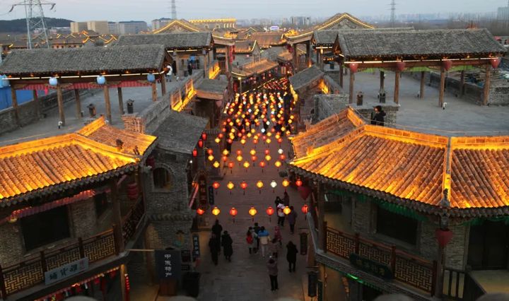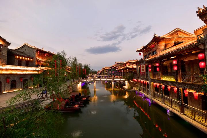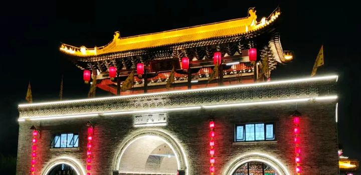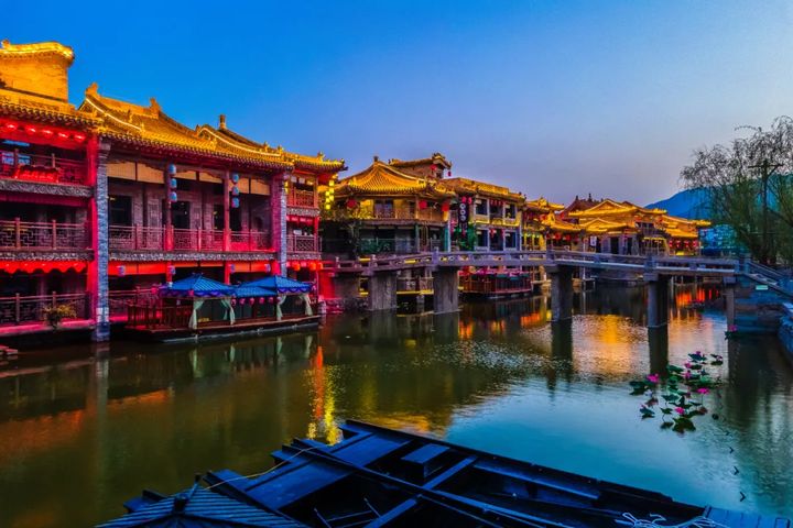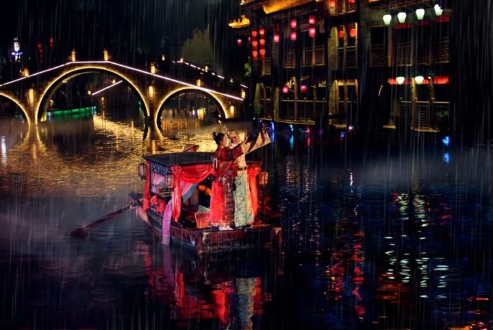 夜晚的古鎮變得五光十色