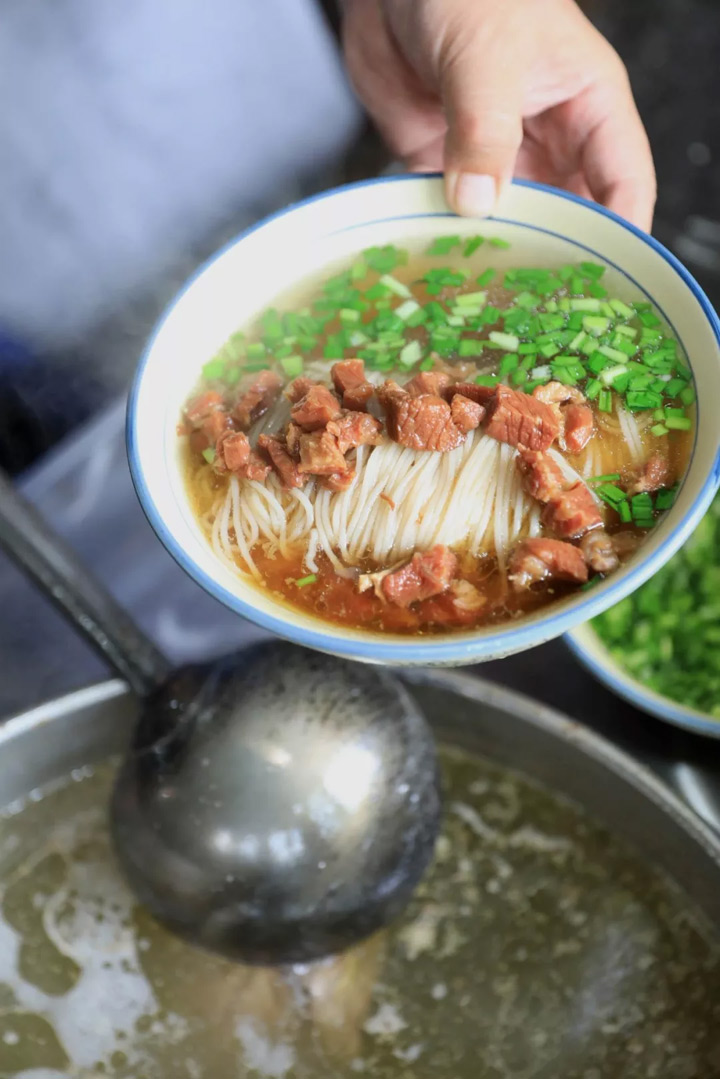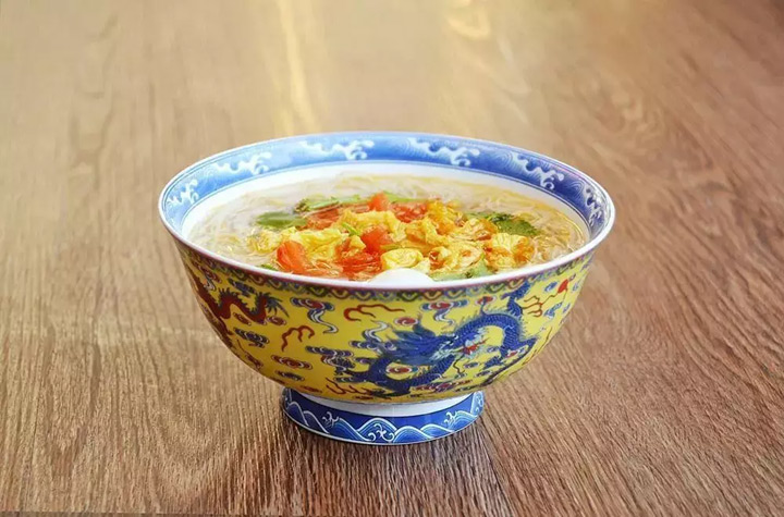 製作講究的宮面,條細空心,油亮潔白,粗細均勻整齊。煮熟挑入碗中,半湯半面,湯清味佳,既可作主食,又可佐餐。