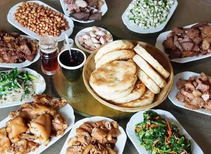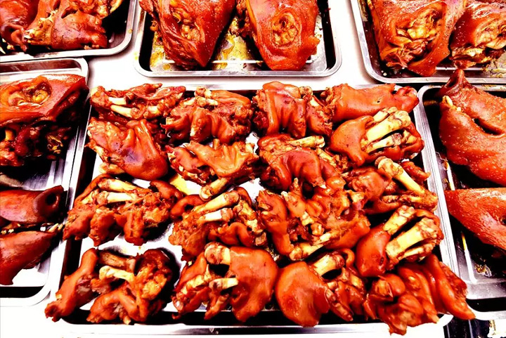 這滷肉,小可一人就餐,用“火燒夾滷肉”吃法;大可用滷肉做成全豬宴,從豬頭到豬尾,豬拱嘴、豬耳朵、豬腸、豬肚、豬蹄…等,共有幾十種不同的菜品,豬的上上下下、裡裡外外皆成美味,配以黃瓜、青菜、豆芽利口,最後再來一碗酸辣清湯麵,甚是爽口!