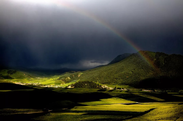 雨過天晴,碧空如洗,彩虹就這樣突然出現在天邊,那柔軟的身軀宛如一條瑰麗的絲帶飄灑地舒展開來。