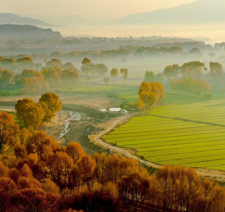 清晨,薄霧彌漫,它微帶寒意,翻騰繚繞。