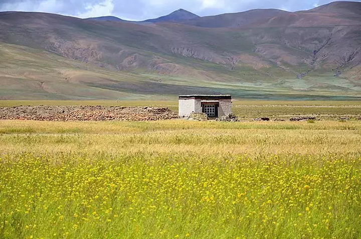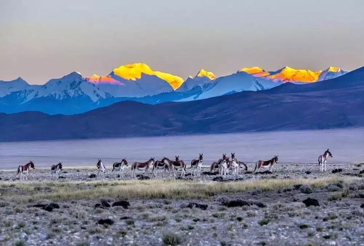 仲巴,藏語意為“野犛牛出沒的地方”,是阿里南線日喀則地區的最後一個縣。這裡沙化嚴重,其老縣城也因嚴重的風沙侵襲而成為廢墟。然而荒涼的原野上卻有大片的沼澤和草甸,羊群和馬匹尤如珍貝般撒在這珍稀的濕地上,沼澤的水中還開滿白色的花花。夕陽西下,金色的沙丘和在草地上覓食的馬兒在暮色中投下迷人的光 影。