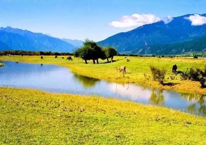 這樣的江南景色,這樣的草原景致,不在江南勝似江南,不像在內蒙卻勝似內蒙。魯朗牧場集草原的秀美、森林的秀美、水質的純美於一身,讓人幾乎忘記地處中國大陸最西南的邊疆。