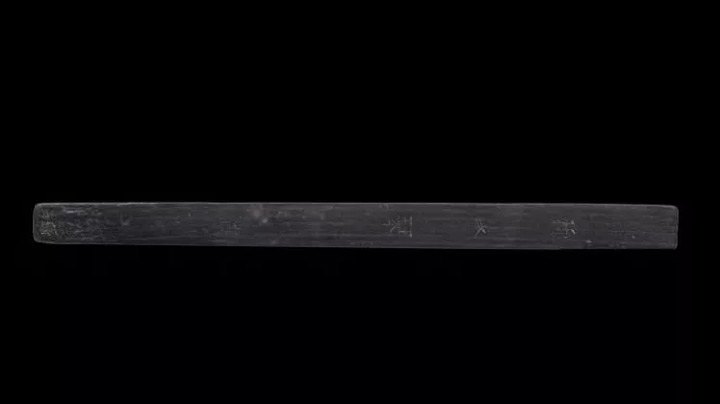 ●南京升州路出土。這件埋於南京一口古井中的象牙尺,反映出孫吳至西晉時期的尺度形制。一尺長24.2公分,兩面皆以圈點將尺之一半五等分,每分為一寸。這把由象牙精磨而成的古尺,推測可能是一把【官式】尺。