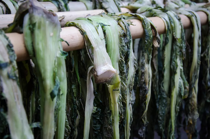 在未採茶的季節,村裡大部分的人還是以農耕為主,上山砍柴,下田種菜,家家戶戶都會曬的糟菜,等曬乾製作成酒糟菜。
