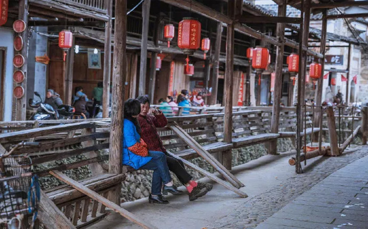 屋簷下兩排長長的靠椅被稱為“每人靠”,意為每個人都能靠,也是一種美好的祝願。