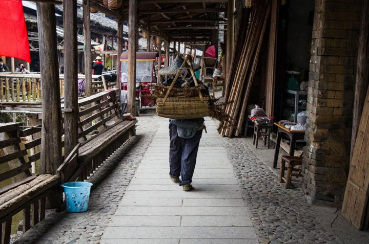 一條蜿蜒的梅溪流經整個下梅村,老人在民居前乘涼,孩童在街巷裡嬉戲,此般景致,讓人不禁駐步,細細品味。