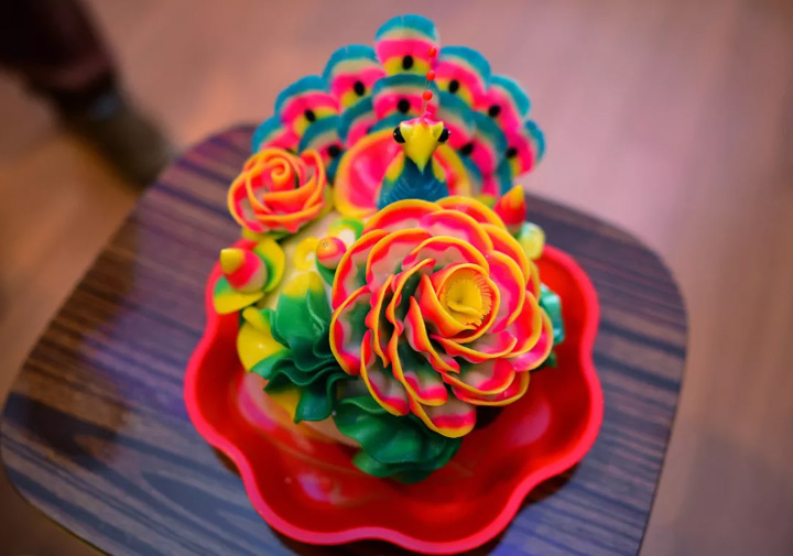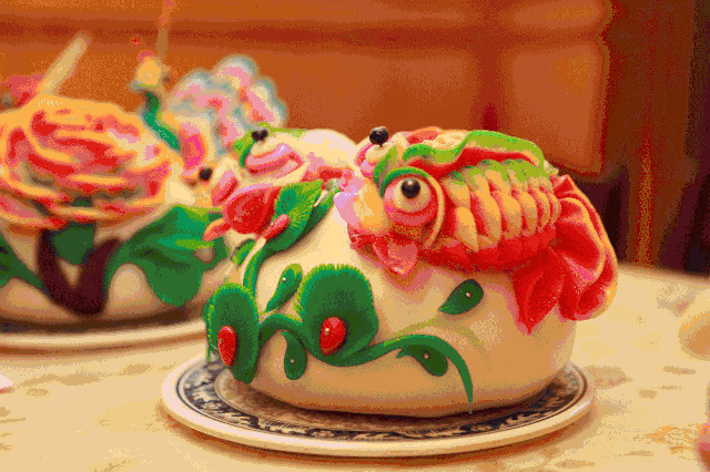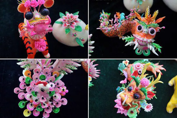 晉南花饃,不僅是禮俗,還是藝術。作品即有人物造型,水鳥魚蟲,也有時令水果,奇花異草,其造型樣式複雜,講究繁多,且色彩斑斕,具有極強的藝術觀賞性。"有饃就有事,有事就有饃"。正因為麵塑將風俗民情融入其中,所以千百年來長盛不衰,也由此,誕生了很多出色的麵塑藝人。