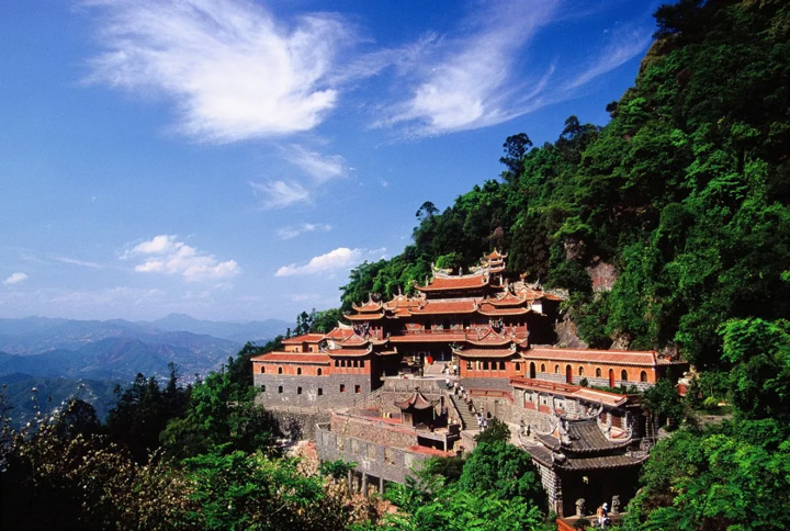步入山門,除了觀覽白水岩、豐山仙洞、朝天閣、出米岩等宗教人文景觀,於此登頂遠眺,山下風光一覽無餘,從這裡看出去的風景恍若仙境,惠女水庫猶如一條長龍。而乘坐纜車又是另一番心情,一邊輕鬆下山,一邊悠然欣賞沿途絕美的景致。