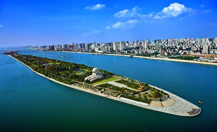 橘子洲地處碧波浩淼的千里湘江之中,四面環水,素有“天下第一洲”之美譽。