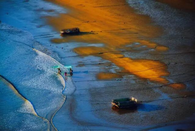 每到傍晚,這里便成了讓人著迷的光影世界,金色的海灘,湛藍的海水,再加上變幻莫測的光線,讓整個霞浦猶如夢中仙境。