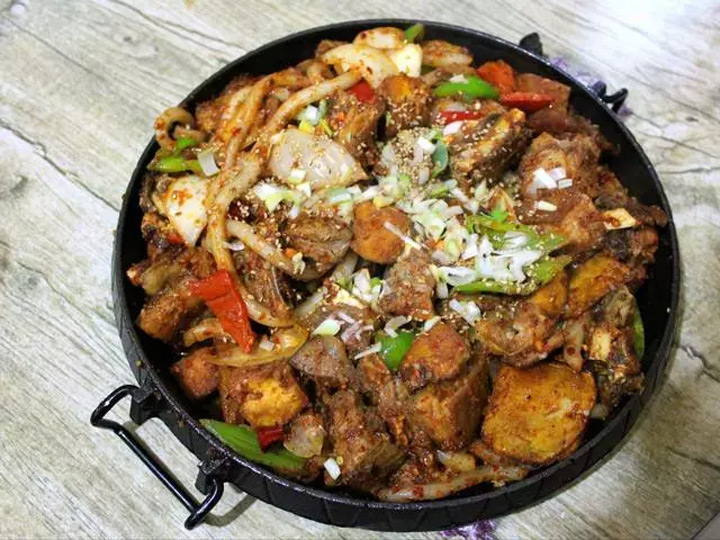 西北哪裡都有羊肉,但是來過青海的人,就會覺得中國其他地方的羊肉,真是湊合。善吃羊的西北人練就了N多種吃羊大法,但炕鍋羊排這道美味,只有西寧地域才有。燉鍋內放入羊肉、蔥、薑、料酒,加水大火燒開後,改小火燉,蔥、薑、蒜熗鍋,加入洋蔥煸炒至透明,再加入土豆塊,調入孜然、花椒、五香、鹽等充分炒勻,起鍋前加入青紅椒,香嫩入味。天氣一冷,熱氣騰騰的羊肉炕鍋變得暢銷。沒錯,冬季要多吃肉,這符合冬季“封藏進補”的規律,也是出於天冷禦寒的需要。
