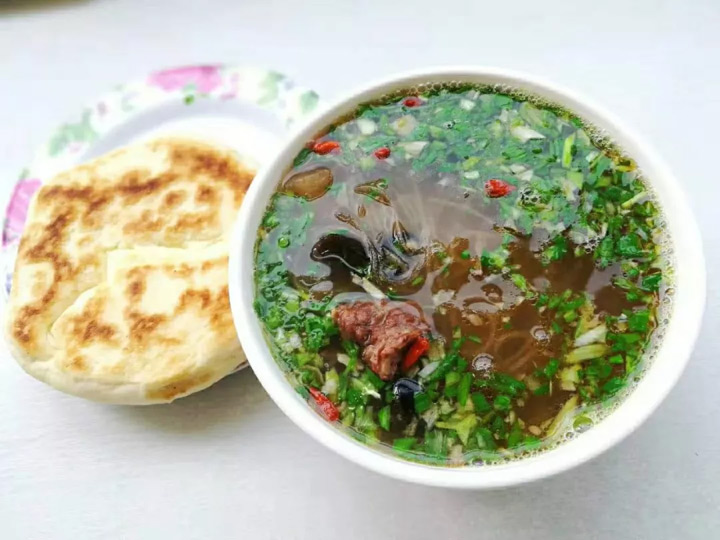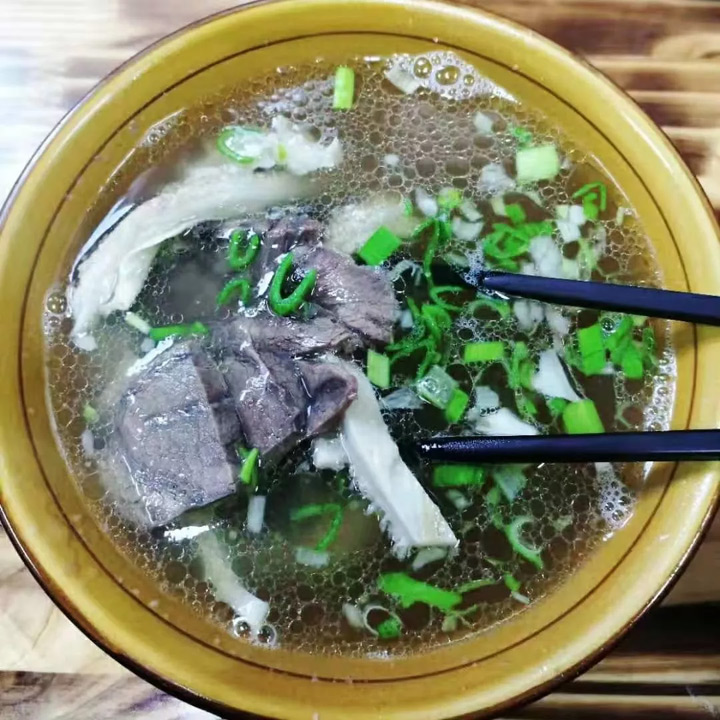 除了羊雜湯,西寧人還喜歡喝牛雜湯。大城市的牛雜湯,要麼清湯寡水,要麼用澱粉勾兌,西寧的牛雜湯,是真的肉湯,肉爛湯濃、香醇濃厚。每天上午八點前,西寧西關大街上瑪律沙牛雜就擠滿了排隊等著喝牛雜湯的人。當外地人還在排隊時,熱衷此味的本地老人早已經端著碗,蹲在地上吸溜吸溜喝起來了。