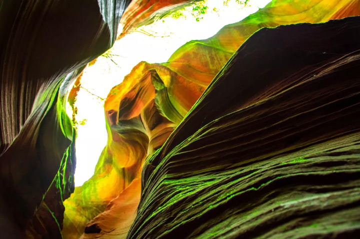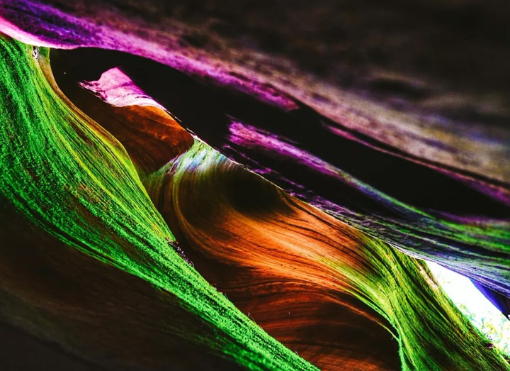 在岩壁上折射出五彩繽紛的迷人色彩