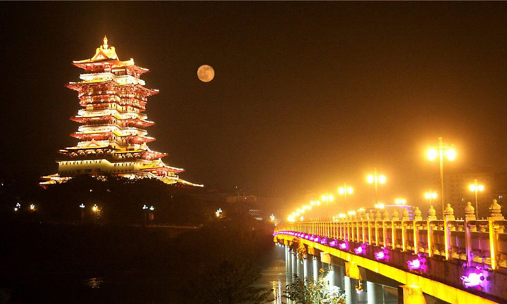 而晚上的越王樓燈火璀璨,更是美得驚豔!來綿陽不到越王樓,算是白來啦。