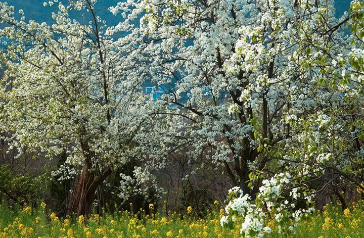 還有縣城正南山匯口村水井灣的梨花海,這幾天也相當壯觀。風吹花瓣落,比童話世界還美幾分!