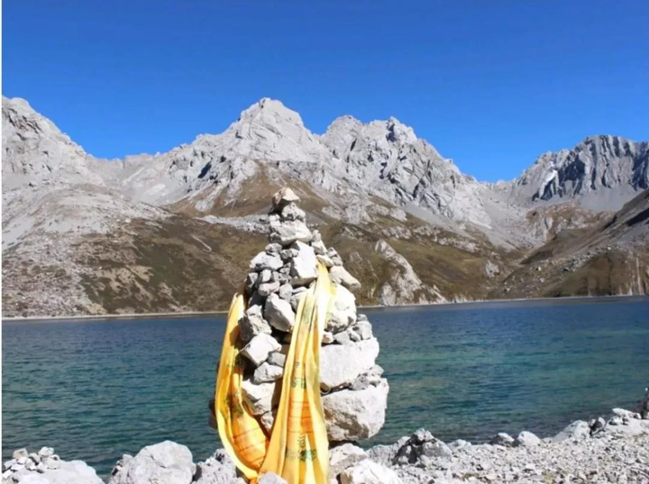 這樣的天然風景,自帶濾鏡,隨便定格一張就是桌面級風景。湖畔邊瑪尼堆是超棒的道具,文藝范兒十足的寫真隨手拈來。