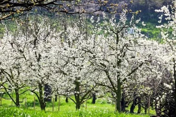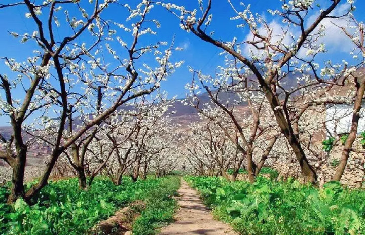 整座山都是李樹,風吹起潔白的花瓣飄揚在空中,拍下湛藍天空下的“李花雨”絕美畫面,朋友圈恐怕都要排隊點贊!