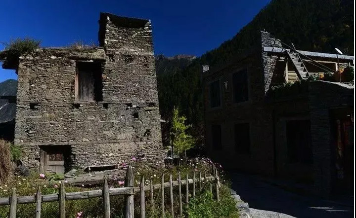 寨子裡,沿用的是傳統的用岩石堆砌的石樓,戶戶相連,錯落有致。