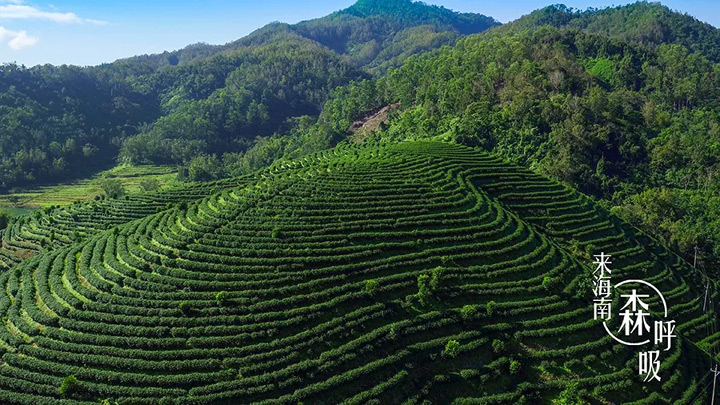 俯瞰鬱鬱蔥蔥的五指山水滿鄉茶園。海南日報記者/武威 攝