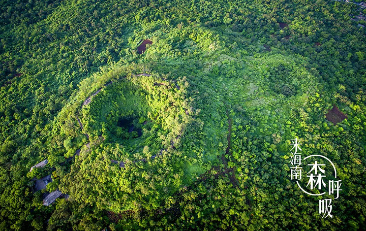 航拍鬱鬱蔥蔥的海口石山火山群世界地質公園。海南日報記者/李幸璜 攝