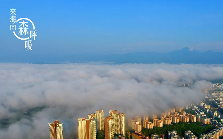晨霧繚繞的保亭縣城,空氣濕潤清新。海南日報記者/李英挺 攝