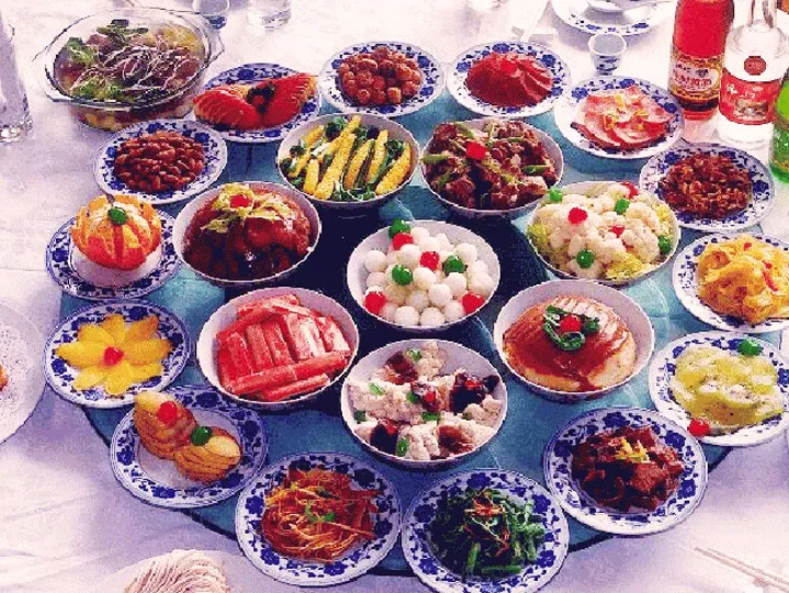 如強身健體的鹿肉、滋補氣血的蛤什螞油、大補的人參、猴頭蘑等均在席中有重要位置。滿族最有名的涼菜,雙色皮凍、炒肉拉皮;最有名的湯菜,白肉血腸以及名點薩琪瑪、小窩頭。
