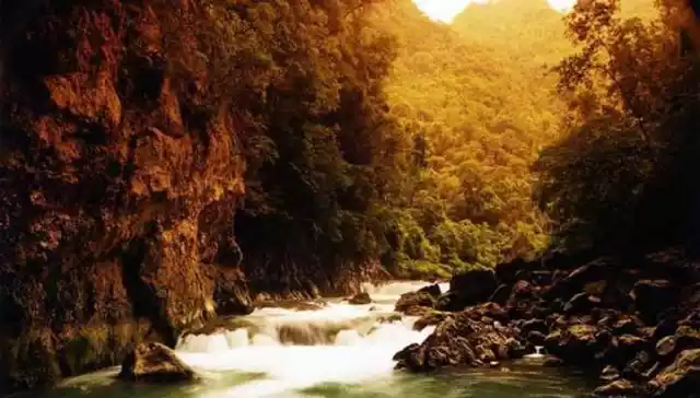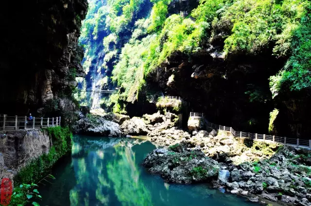 旅遊者可順江在碧玉般的江水中進行驚險刺激的漂流,也可漫步於峭壁棧道,濃蔭小路,還可穿越典型的喀斯物原始森林。峭壁上藏酋猴,獼猴在攀援嘻戲,河中鴛鴦、野鴨暢遊,魚兒成群可見,江上魚鷹白鷺小鳥飛翔,野趣盎然。