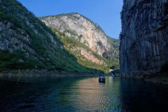 峽谷上段懸崖峭壁,水流湍急,雄奇壯美類三峽;下端山青嶺秀,水深江寬,旖旎多姿似漓江。從白馬灘至姊妹峰約40公里的的水路上,寬闊處煙波浩瀚,狹窄處一線青天,谷坦蕩如男子,水溫柔似多情少女。