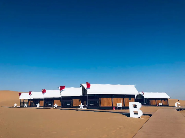 沙景帳篷木屋是沙漠星星酒店B區的主要房型,猶如散落在沙漠中的白帆小船,在沙海波濤中翩翩起舞。