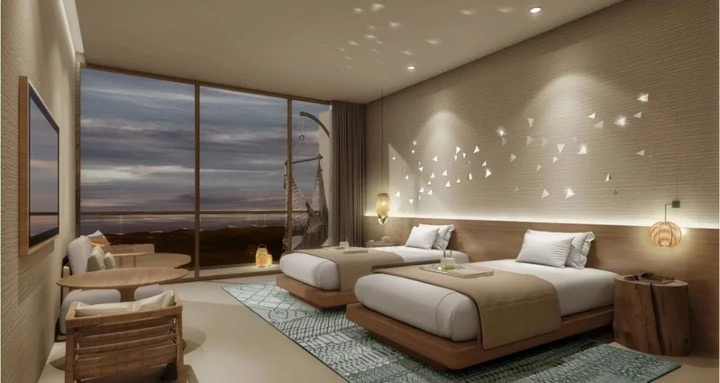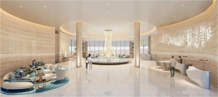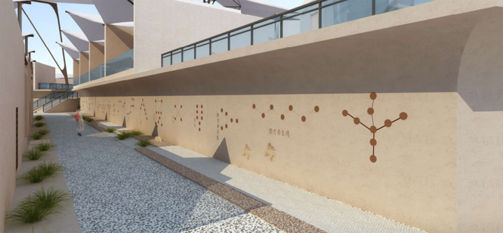 在整體概念設計中,設計者巧妙的闡述了傳統天文與現代天文之間的文化傳承,將黃道十二星座、二十八星宿與十二時辰融會貫通,同時把星星酒店內分區域展現傳統道家的五行元素與太陽星系命名對照重疊,結合佛家中五蘊的修心禪境,將人與自然、人與宇宙間辯證統一的平衡法則通過酒店文化的承載向世人傳遞,讓廣大遊客在度假期間,能夠身臨其境、天人合一般地感悟星空和沙海的博大胸懷,讓人們不僅享受度假體驗,還能獲得天文地理及歷史文化的精神加持。