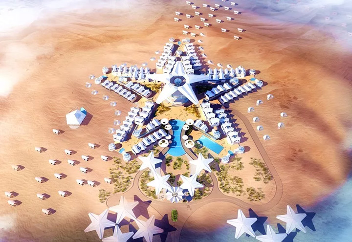 沙漠星星酒店是港中旅(寧夏)沙坡頭旅遊景區即將向世人呈現的又一經典之作,在清空安寧、自然而然的心靈暢境之中,宛如一座清心釋然的天仙居所,從銀河於九天而落。