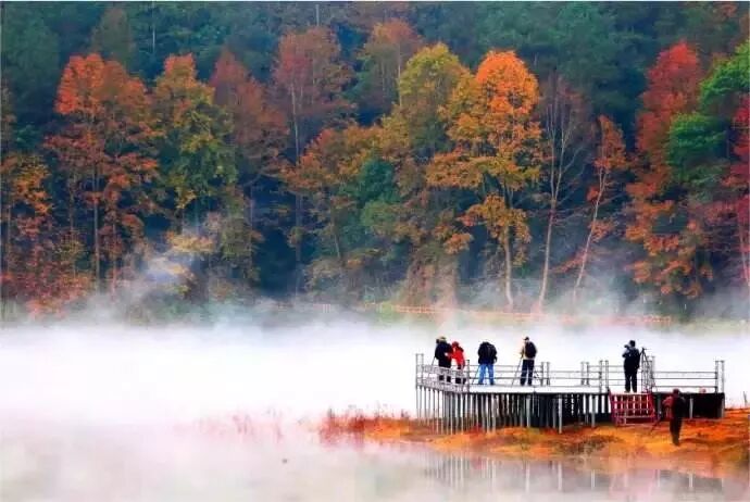 景區內的紅楓種類多、週期長、色彩豐、品味高、面積大。有三角楓、五角楓、七角楓等13個品種,漫山紅葉如火似霞,堪稱“南國紅楓天堂”。