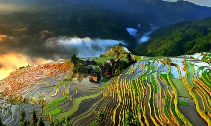 ▲在黔東南,從江加榜梯田被譽為中國最好的梯田之一,梯田中散落著苗鄉特有的吊腳樓,別有一番風味。