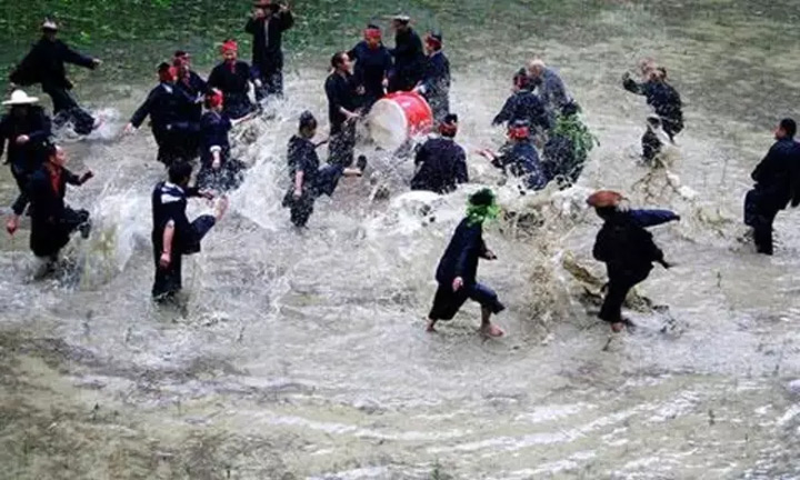 ▲在劍河有一種在水裡表演的舞蹈,叫做水鼓舞,看圖片上陣勢,那不是我們孩提時代最懷念的無憂無慮嘛。