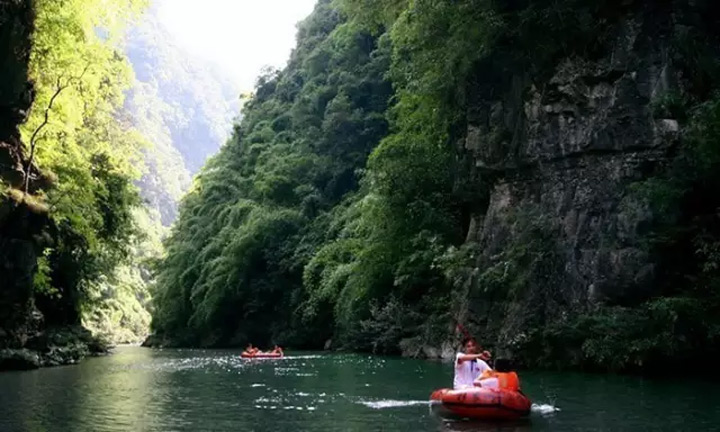 ▲杉木河流淌了億萬斯年,卻一直名不見經傳。如今杉木河自助漂流成為一大景致,還因其柔美被稱為“親情河,友情河,愛情河”,其因水質清純、有驚無險自助漂而被譽為“礦泉河”。