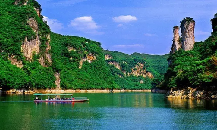 ▲在黔東南,岑鞏龍鼇河風景名勝區是古城思州的一處代表景點,風景秀麗,再現古城美景。
