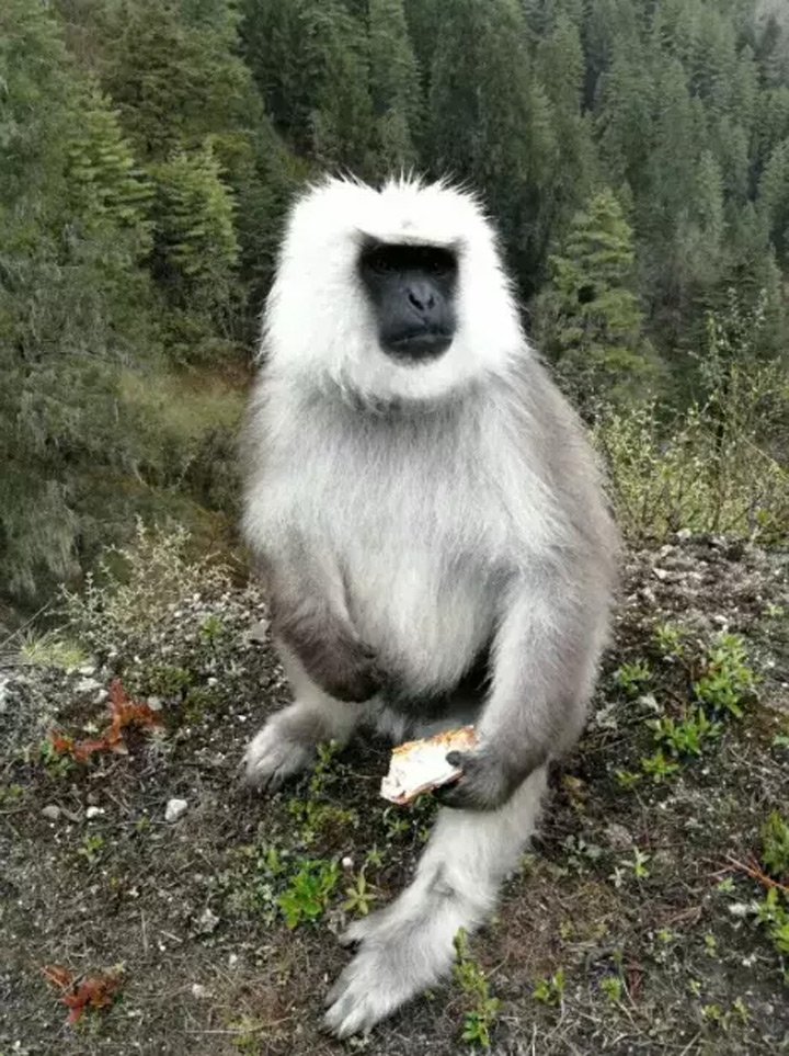 和國家一級保護動物長尾葉猴嬉戲互動