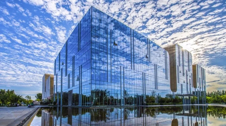 荷花是香河的縣花,設計理念源於國畫大師張大千的《荷》和宋朝著名畫家錢選的《山居圖》,主體建築以荷花為原型,五個塔樓如同荷花的花瓣,塔樓之間的路徑如同花莖,中心的庭院成為花芯。此外,建築中還蘊含著傳統文化對山水文化的追求,北側的三個塔樓作為建築的主要輪廓,體現了“三山五嶽”的文化意境。